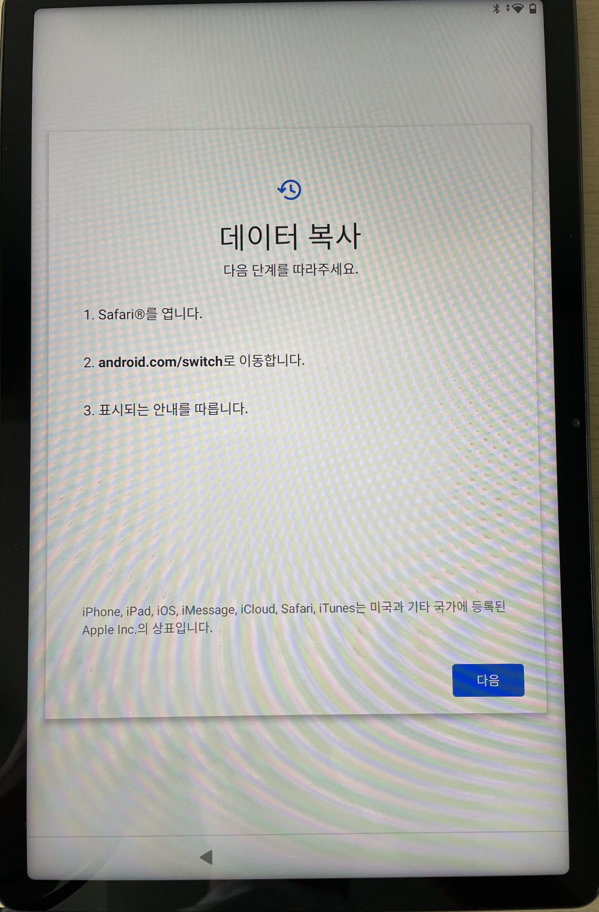 간단한 설정을 마치게 되면 기존 Device에서도 정보를 복사해 올 수 있도록