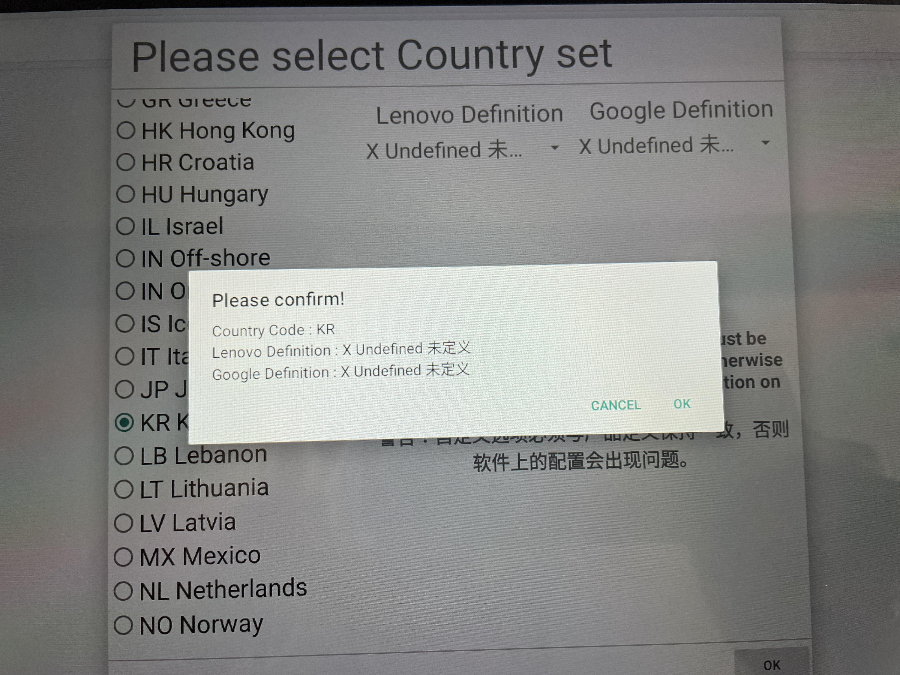 선택한 국가코드가 맞는지 확인창이 뜨며 최종적으로 OK 버튼을 누르면 데이터 삭제 후 재부팅이 진행됩니다.