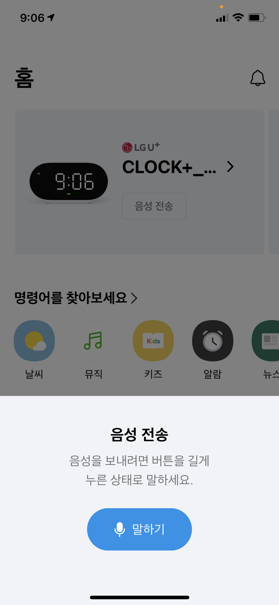 다음은 "헤이 클로버 미세먼지" 하였을때 Clock+에서 흘러나오는 음성 영상입니다.
