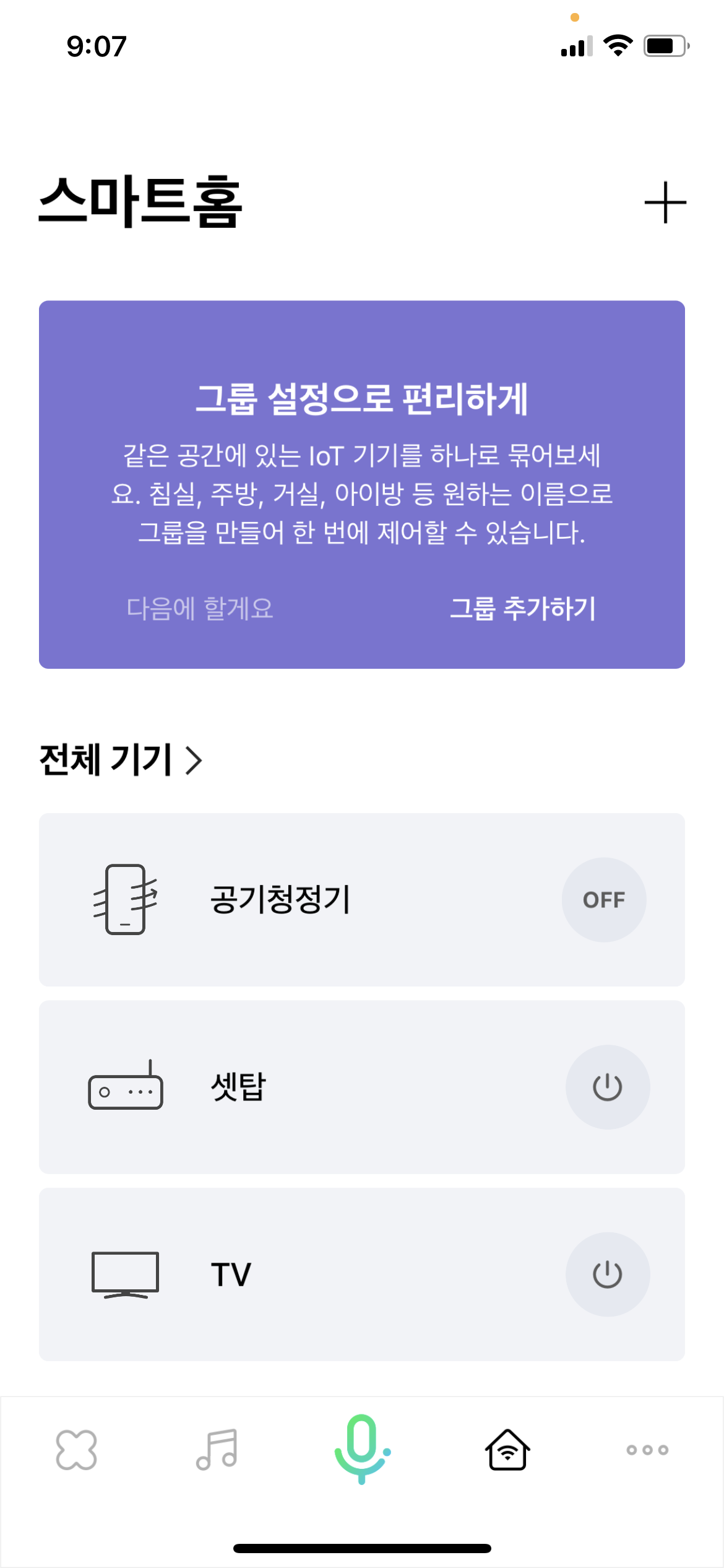 설정할 수 있어, 일일이 "헤이 클로바 TV꺼줘", "헤이클로버 공기처정기 꺼줘" 기기마다 작동 요청을 해야하는
