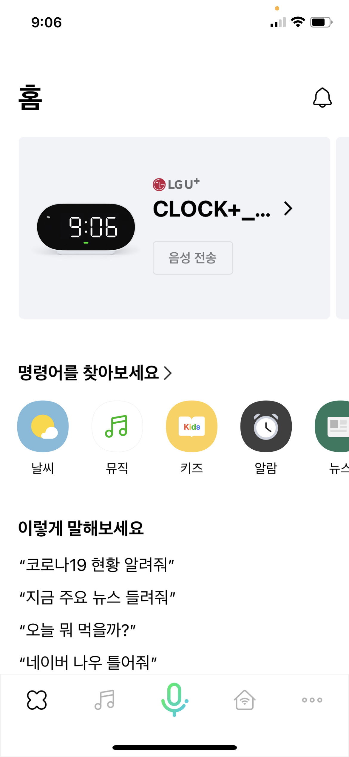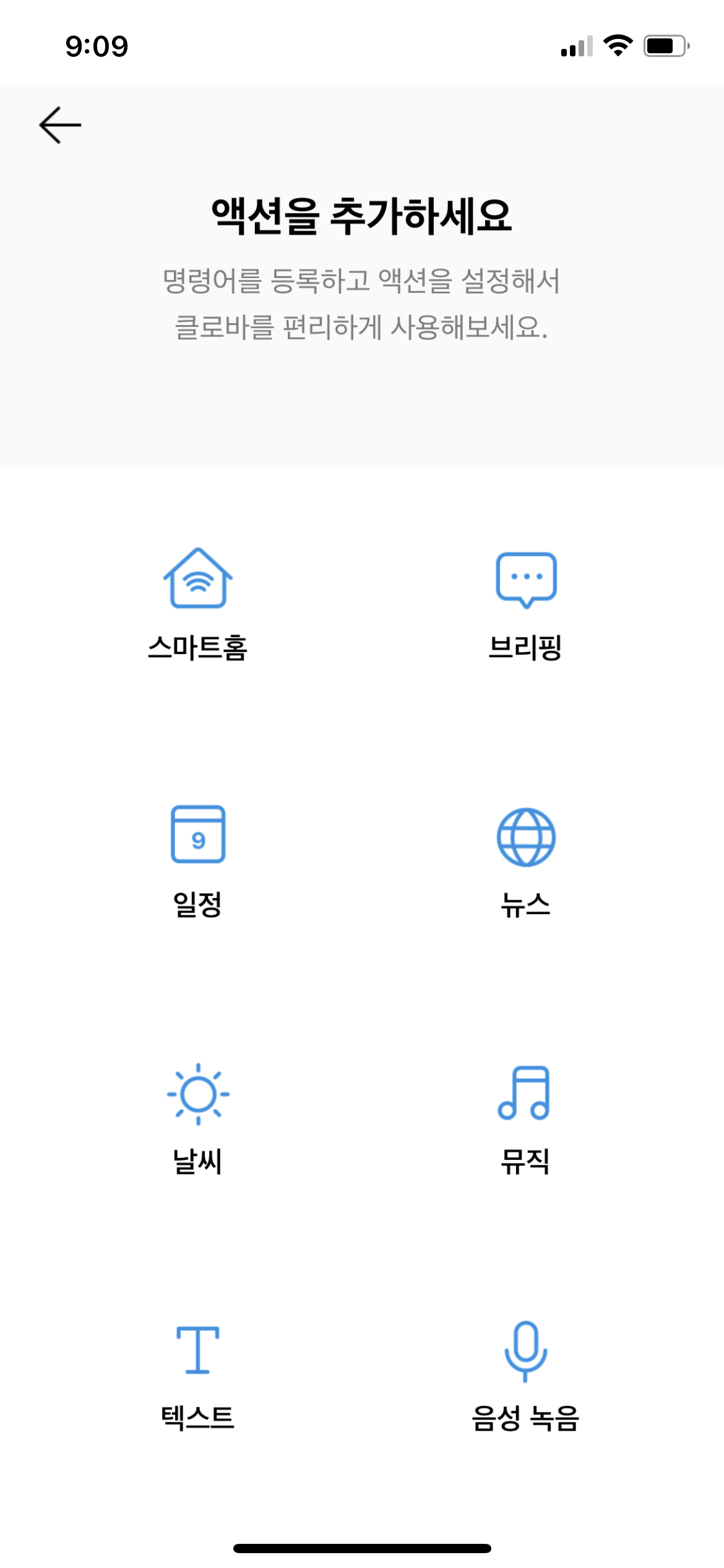 이 이외에도, 브리핑, 일정, 날씨 등 여러가지 기능을 사용할 수가 있습니다.